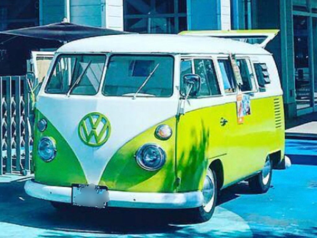 1963年式のワーゲンバスキッチンカーです。おすすめメニューは、2種類のチーズガレットやカカオ71%チョコレート&47%ホイップクリームのガレットです。