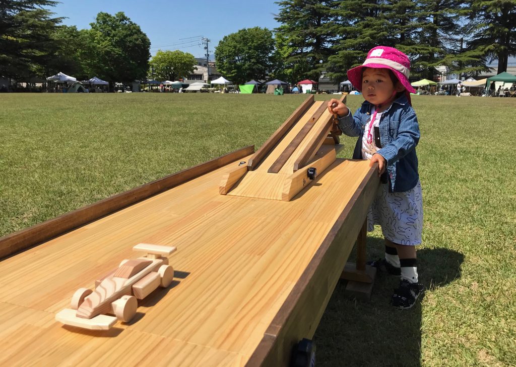 木製ミニカーキットを組みたて、専用コースで到達距離を競います。到達距離の分だけ世界地図のマスを進み、ウッドカーで世界一周を目指します!