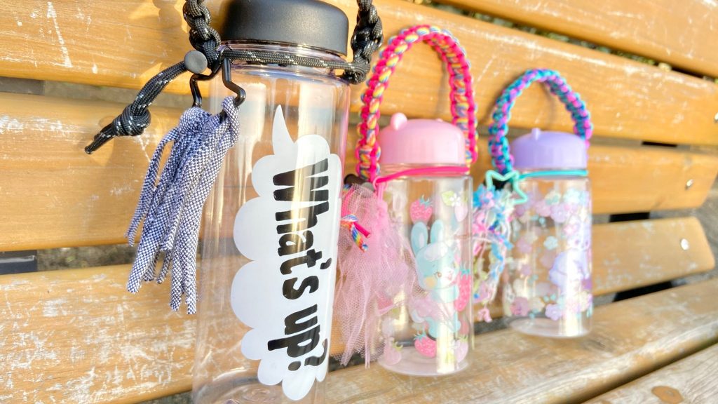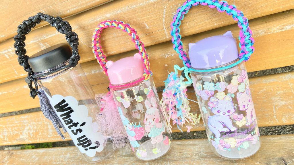 アウトドアの人気アイテム!カラフルなパラコードで作るボトルホルダーです。水筒やペットボトルにも取り付けられる便利なアイテムです。カラフルで可愛い自分だけのオリジナルアイテムを作りましょう♪